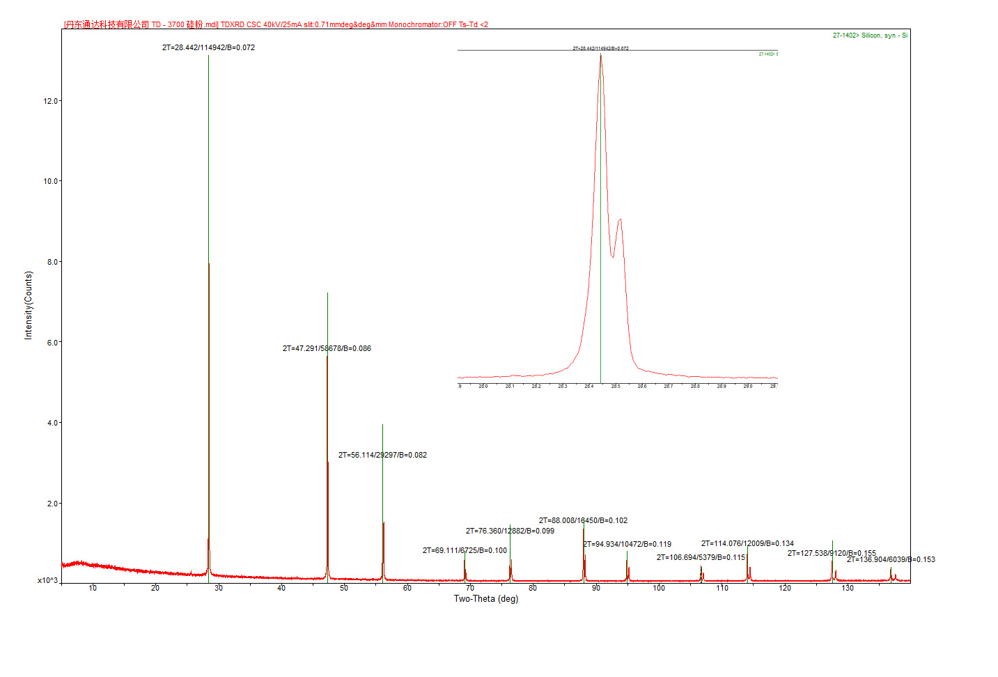 備注:TD-3700相比普通衍射儀可以得到更高的峰強度,更高的分辨率及更小的峰半高寬。
